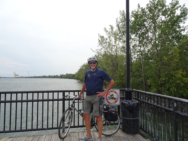 We passed by Parc Jerry Roufs. A.T. told Dorothy of a sailing regatta he had once had with him. Jerry had cycled to the race site in Dorval on St Jean Baptiste Day. No doubt he would be happy to see the new path in front of his Parc.